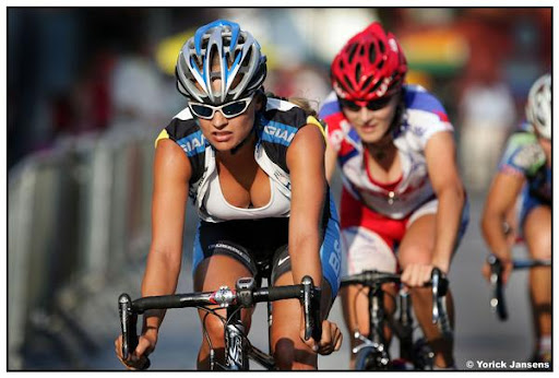 кстати, это самое карбоновое колесо держит Дженнифер Холь - швейцарская мега-велогонщица, выиграла кучу сорев