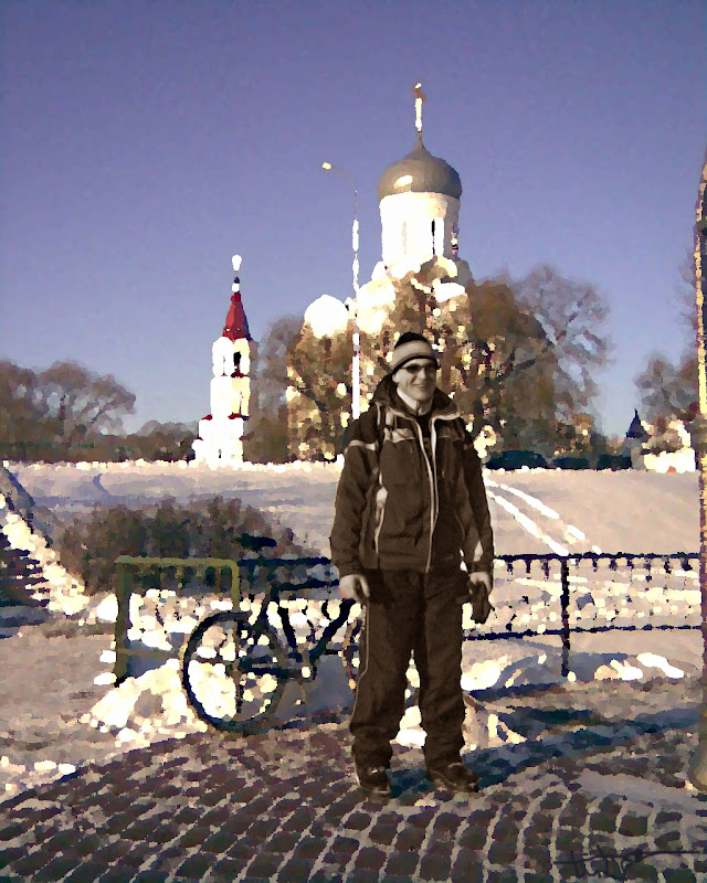 Удивление поджидало нас у родника. Точнее оно не поджидало, оно подкатило на мтб и на вопрос "Чудо, ты откудо?" сказало, что по-русски трындит очень нескладно и стрёмно. Оно оказалось омериканцем. Про всякие велокомьюнити в инете в Минске не было в курсе. Глеб ему написал на снегу все адреса поехалей и велобаев, на что Американец очень обрадовался. Сказал, что жена ему переведет, когда он решит залезть на эти ресурсы. Хотя в его взгляде сквозло толи недоумение, то ли страх, и в них явно читалось, что он стопудово думает, что мы его затягивем в страшную секту))...Зовуд Джон. Ещё один. Он попил святой водицы и удалился на нормальной скорости. А мы смекнули - это ш пока наши вон за компами по домам, эти тут завоёвывают полотна наших вд... Решили по зиме, когда велопоголовье наиболее уязвимо...)