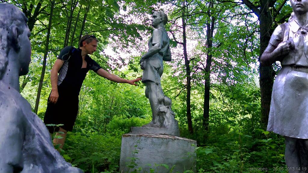 Для впечатлений движемся к камню, к ДОТу, к реке, к переезду, к совдеповским статуям, к гребному кнаналу, вдоль моря, к Ароновой Слободе, к Селютам, к реке Вяча, к финишу в Минске у стелы.