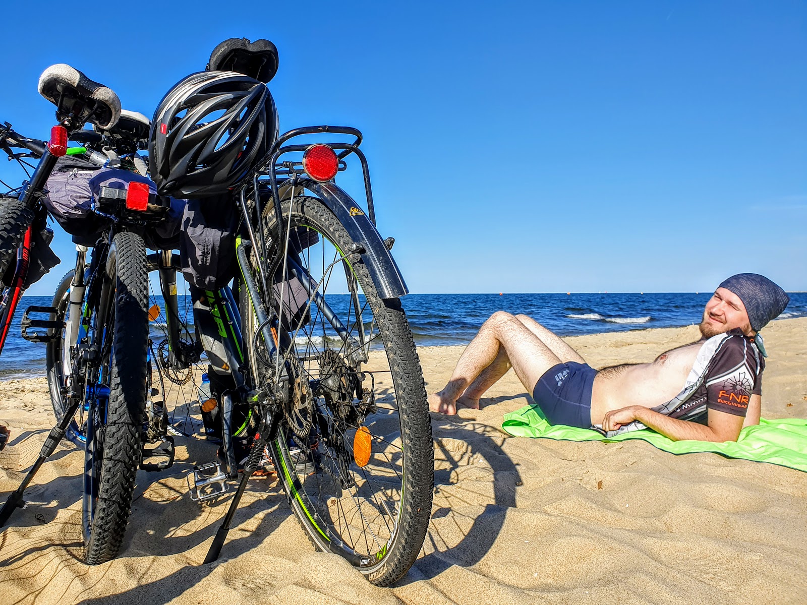 ***День пятый. Утром +21°С, днём обещают +31°С... Отправились в покатушку на косу Хель. На корабле, с великами