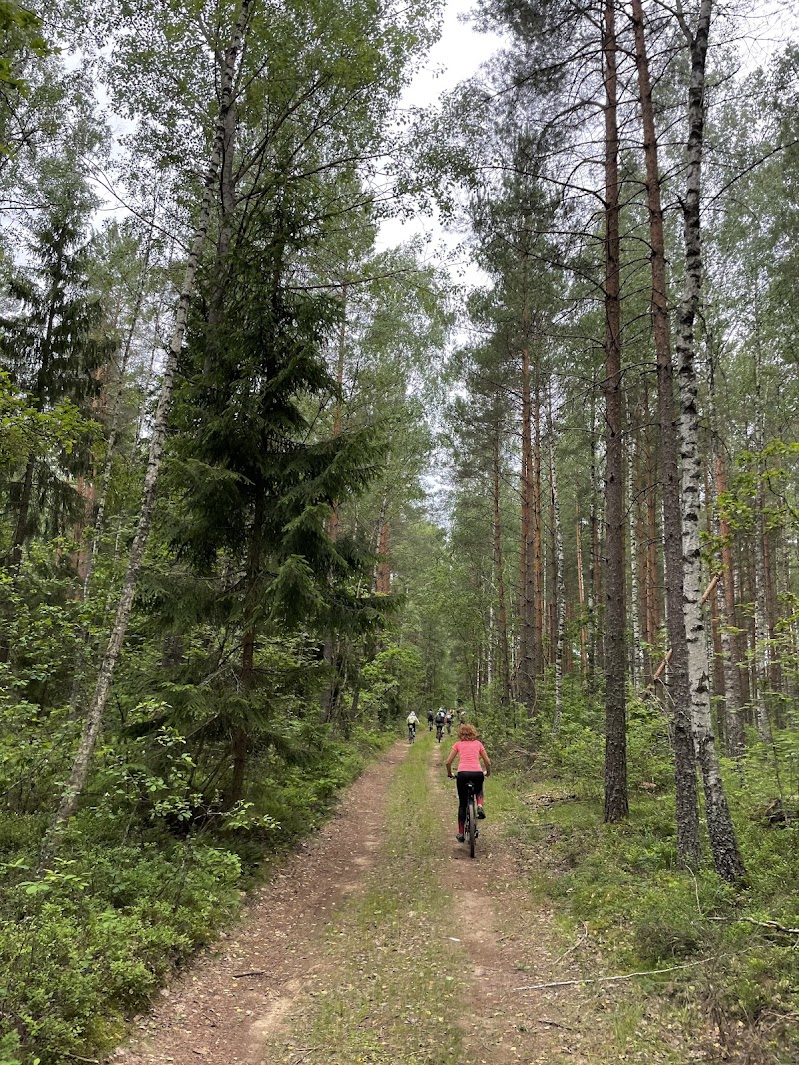 Трек состоит из 3 частей - городского асфальта, дорожек вдоль Березины и лесных дорожек.